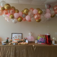 I assisted the friends of the Willis Family to help bring the baby shower to life. I custom made the balloon garlands and furnished the table cloths, custom welcome sign, most of the decor items on the gifting table, napkins, chargers and fabric for the mom to be chair. We collaborated with Blue Hibiscus on the party favors. Thanks goes out to everyone who contributed to making this day a success.